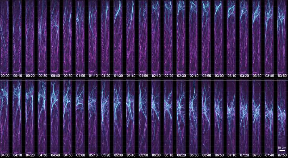 捷克科学院 Fendrych 实验室:拟南芥根(MAP4-GFP 标记)向重力性实验连续成像 |